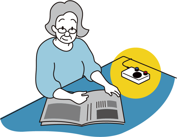 端末利用者の急な体調の変化など緊急事態に対して、端末の赤いボタンを押すと、システムに設定したご家族のメールアドレスに自動でメール通知が届くので、万が一の時の緊急連絡も可能です。